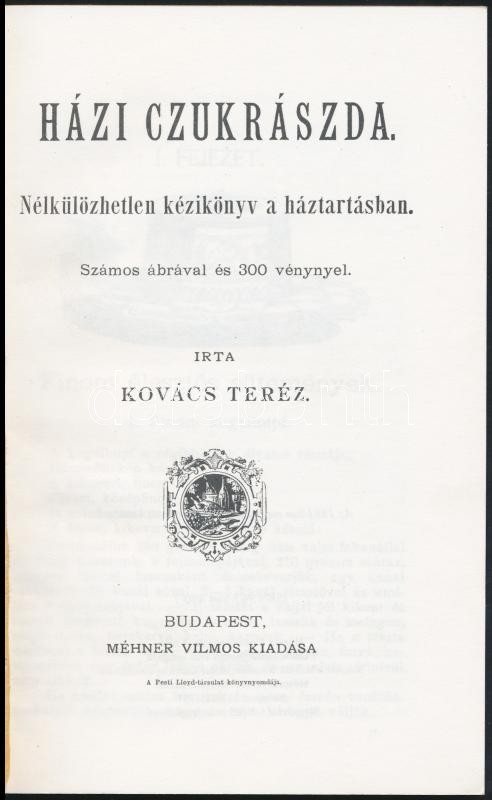 Kovács Teréz: Házi cukrászda. Nélkülözhetetlen kézikönyv a háztartásba... https://www.darabanth.com/en/303-Online-auction/303.0/Books/Books-Gastronomy-and-Gardening~500007/Kovacs-Terez-Hazi-cukraszda-Nelkulozhetetlen-kezikonyv-a-haztartasban-Szamos-abrava~II1617302
