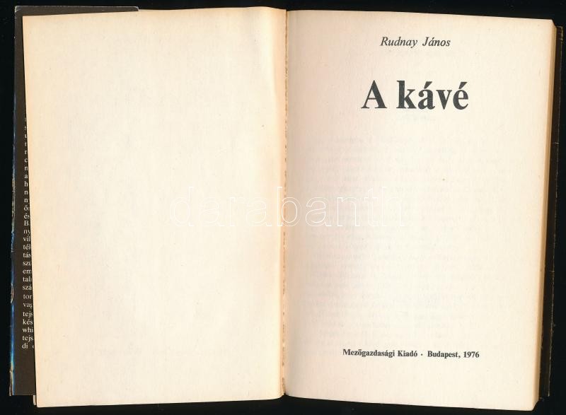 Rudnay János: A kávé. A kávé és a kávéházak története, italkészítés, receptek, orvosi tanácsok. Bp.,1976, Mezőgazdasági Kiadó. Kiadói papírkötés.