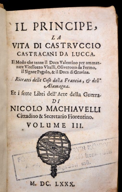 Il Principe, La Vita Di Castruccio Castracani III, kötet. 364p. Korabeli, ázott pergamen kötésben / In sogged pergamin binding.