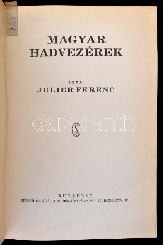 https://www.darabanth.com/en/303-Online-auction/303.0/Books/Books-Military~500005/Julier-Ferenc-Magyar-hadvezerek--Bp-1930-Stadium-470-2p-Szovegkozti-terkepvazlatok~II1582173