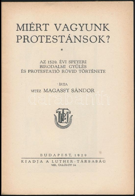 Magassy Sándor: Miért vagyunk protestánsok? Az 1529. évi speyeri birod... https://www.darabanth.com/en/303-Online-auction/303.0/Books/Books-Religion~500013/Magassy-Sandor-Miert-vagyunk-protestansok-Az-1529-evi-speyeri-birodalmi-gyules-es-protesta~II1617307
