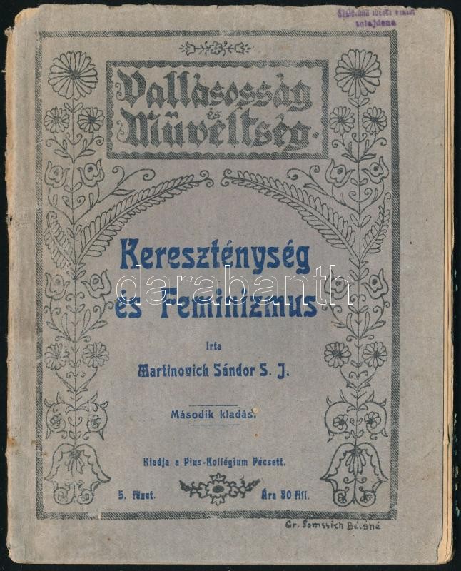 Martinovich Sándor: Kereszténység és Feminizmus. Pécs, 1918, Dunántúl ... https://www.darabanth.com/en/303-Online-auction/303.0/Books/Books-Religion~500013/Martinovich-Sandor-Keresztenyseg-es-Feminizmus-Pecs-1918-Dunantul-Wessely-es-Horvath-~II1550747
