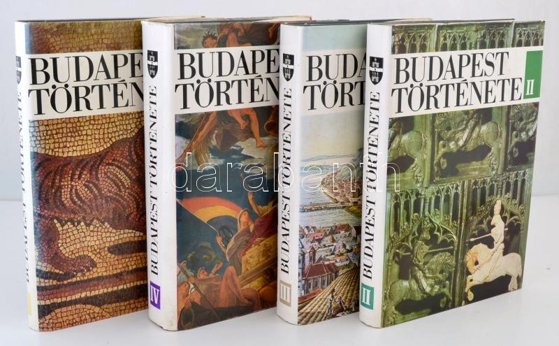 Budapest Története I-IV. Szerk.: Gerevich László, Kosáry Domokos, Vörös Károly. Bp., 1975-1978, Akadémia Kiadó. I-II. kötet: Második kiadás. III-IV. kötet: Első kiadás. Kiadói egészvászon-kötés, kiadói papír védőborítóban, mellékletekkel.
