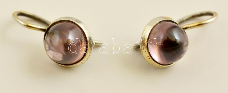 Ezüst(Ag) orosz, üveg kővel díszített fülbevalópár, jelzett, h: 1,6 cm, bruttó: 3,2 g