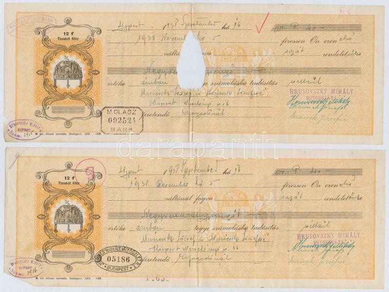 1936-1939. 16db kitöltött váltó aranypengőről, bélyegzésekkel T:II,II-,III,III- egy lyukas