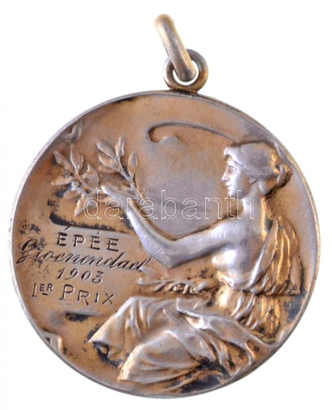 Description: Franciaország 1903. "Épée - Premier Prix" vívás díjérem füllel, "AFR" gyártói jelzéssel. Szign.: Paul Fisch (30mm) T:2 patina