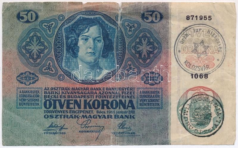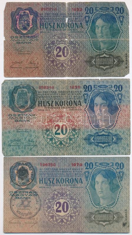 https://www.darabanth.com/en/303-Online-auction/303.0/Numismatics/Hungarian-Banknotes~300007/1913-1917-7db-os-vegyes-korona-bankjegy-tetel-mindegyik-felulbelyegzett-kozte-hamis-belyegzC3~II1629091