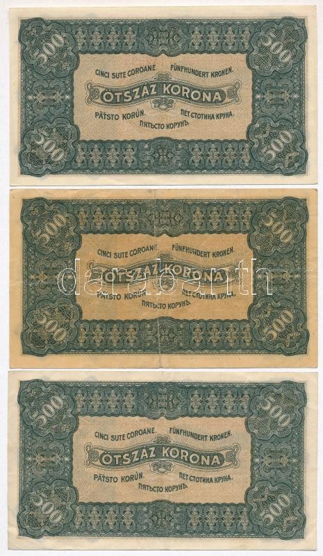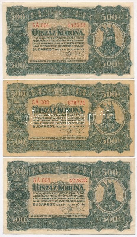 1923. 500K "Magyar Pénzjegynyomda Rt. Budapest" nyomdahely jelöléssel (3x) T:II-,III