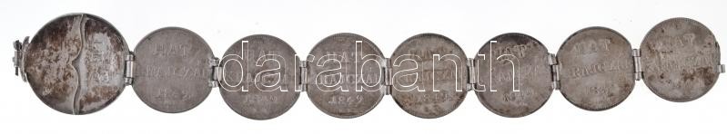 1848KB 10kr Ag "V. Ferdinánd" + 1849NB 6kr Ag (7x), az érmek ékszerré alakítva, a 10 krajcáros egy nyitható medalion része T:2,2- patina, széleken sérült Hungary 1848KB 10 Kreuzer Ag "Ferdinand V" + 1849NB 6 Kreuzer Ag (7x), all of them made into jewelry, the 10 Kreuzeris part of a medallion that can be opened C:XF,VF patina, damaged edges