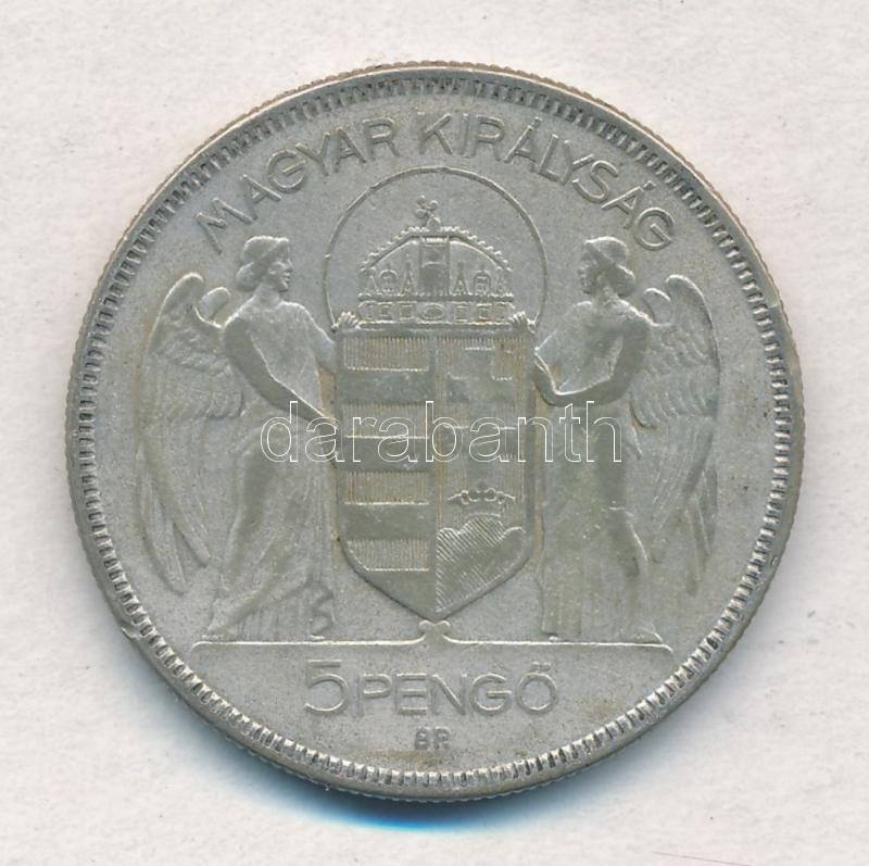 https://www.darabanth.com/en/303-Online-auction/303.0/Numismatics/Hungarian-coins-and-coins-with-Hungarian-mint-marks~300008/1930-5P-Ag-Horthy-jobbra-T2-3-Adamo-P8~II1627231