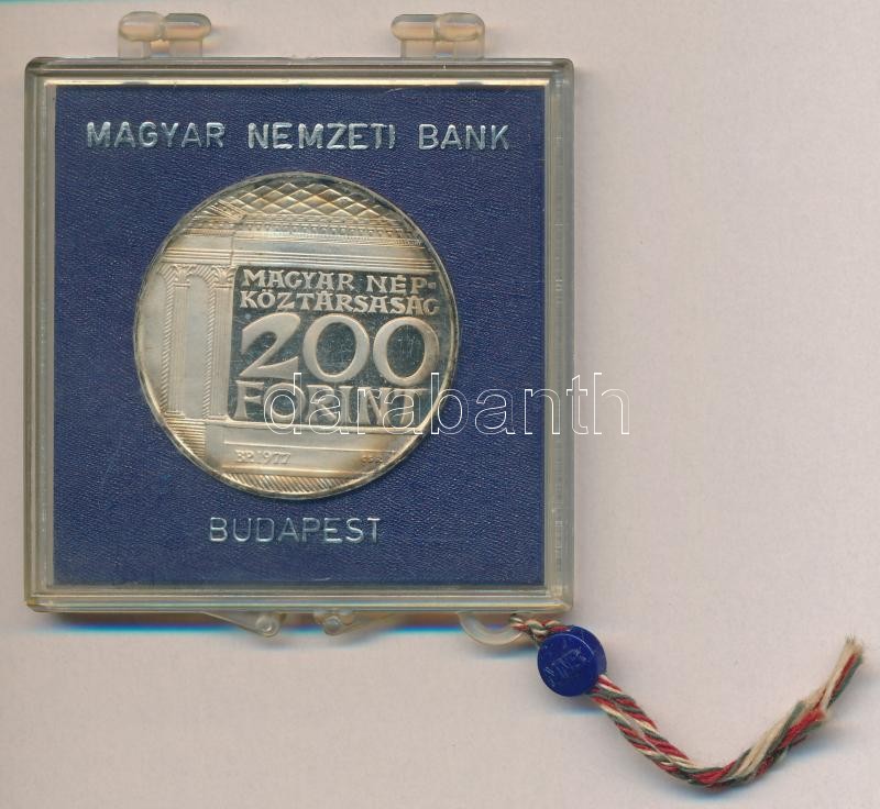 https://www.darabanth.com/en/303-Online-auction/303.0/Numismatics/Hungarian-coins-and-coins-with-Hungarian-mint-marks~300008/1977-200Ft-Ag-Nemzeti-Muzeum-serult-plombalt-plasztiktokban-TPP-patina--Adamo-EM55~II1630186