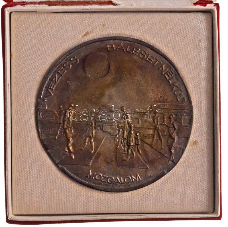Rácz Edit (1936-) DN "Vezess Baleset Nélkül Mozgalom" Br emlékplakett eredeti "FŐVÁROSI KÖZLEKEDÉSBIZTONSÁGI TANÁCS" tokban (89mm) T:2