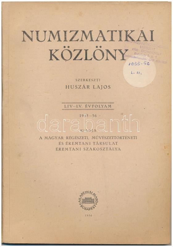 Huszár Lajos (szerk.): Numizmatikai Közlöny LIV-LV. évfolyam 1953-1954... https://www.darabanth.com/en/303-Online-auction/303.0/Numismatics/Numismatics-Literature~300002/Huszar-Lajos-szerk-Numizmatikai-Kozlony-LIV-LV-evfolyam-1953-1954-Magyar-Regeszeti-Muv~II1572539