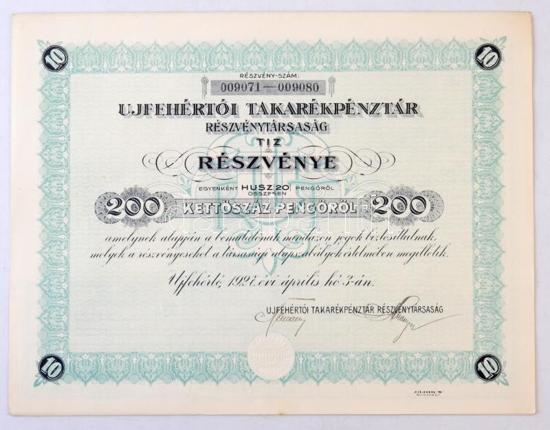 https://www.darabanth.com/en/303-Online-auction/303.0/Numismatics/Shares-and-Tickets~300005/Ujfeherto-1927-Ujfehertoi-Takarekpenztar-Reszvenytarsasag-reszvenye-200P-rol-szelv~II1627886