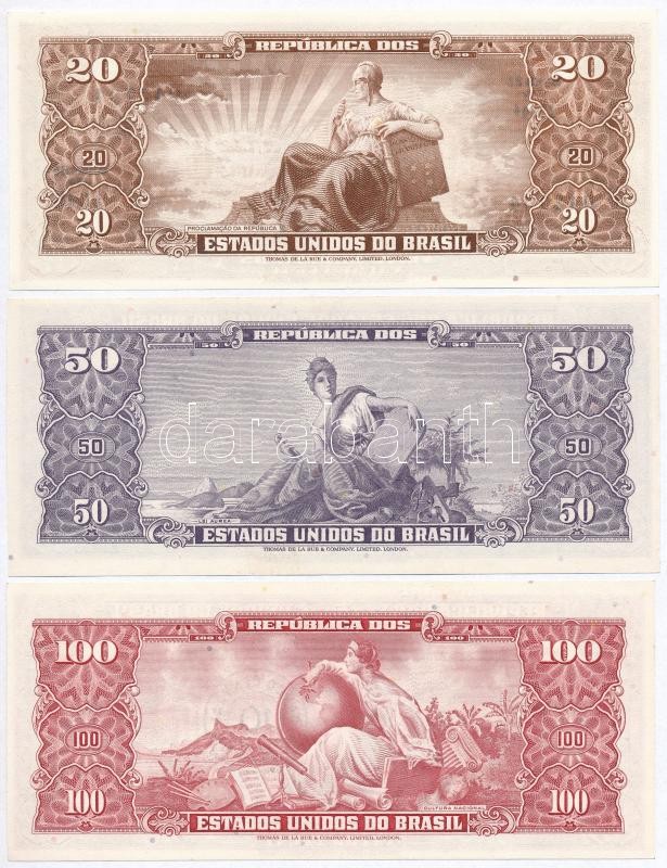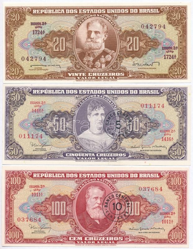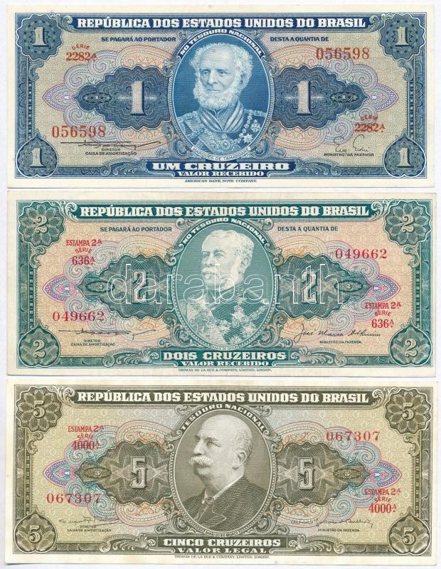 Description: Brazília 1955-1967. 6xklf bankjegy, az 50C és 100C felülbélyegezve, 2C-n két hajtás T:I,III