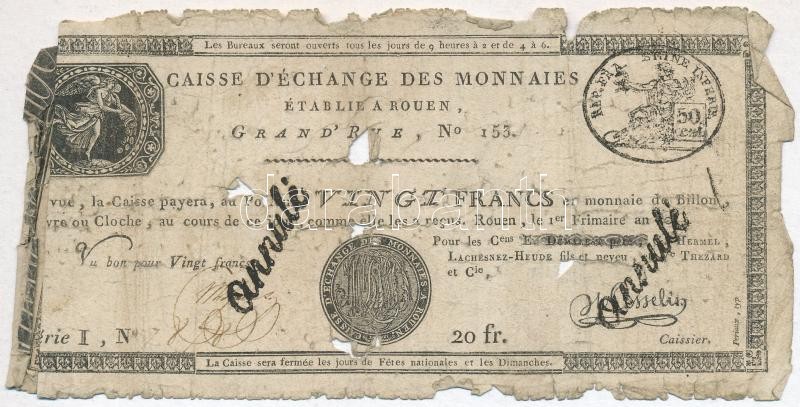Franciaország / Rouen 1797-1803. 20Fr "annulé (érvénytelen)"...