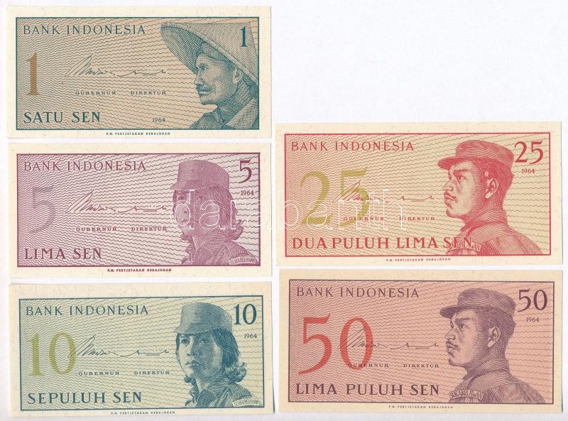 Indonézia 1964. 1s + 5s + 10s + 25s + 50s T:I