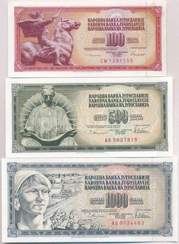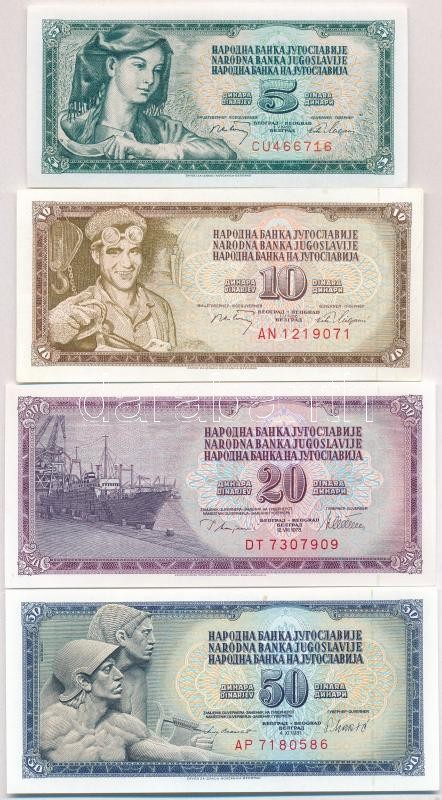 Jugoszlávia 1968. 5D + 10D + 1978. 20D + 1981. 50D + 1986. 100D + 1978...