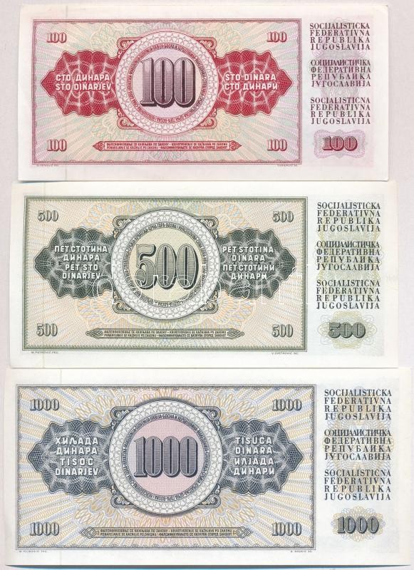 Jugoszlávia 1968. 5D + 10D + 1978. 20D + 1981. 50D + 1986. 100D + 1978. 500D + 1000D T:I-II