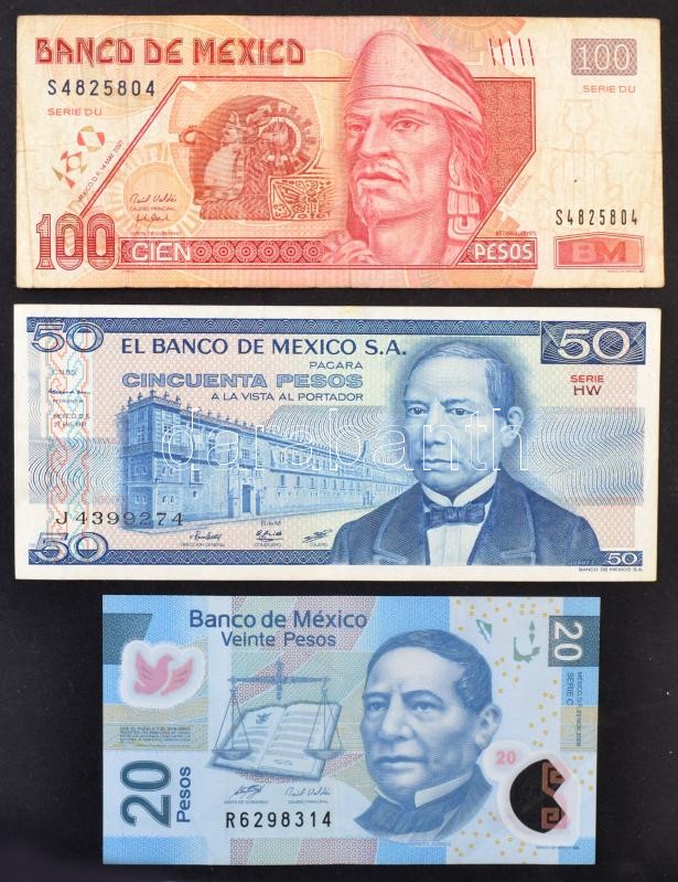 Mexikó 1975. 10P + 1981. 50P + 2006. 20P + 50P + 2007. 100P T:II-III- ...