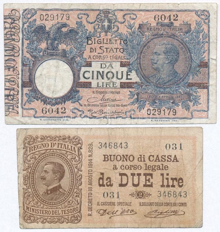 https://www.darabanth.com/en/303-Online-auction/303.0/Numismatics/Worldwide-banknotes~300012/Olaszorszag-1904-5L-plus-1914-2L-TIII---Italy-1904-5-Lire-plus-1914-2-Lire-CVG--Krause-23-37~II1628440