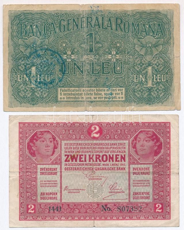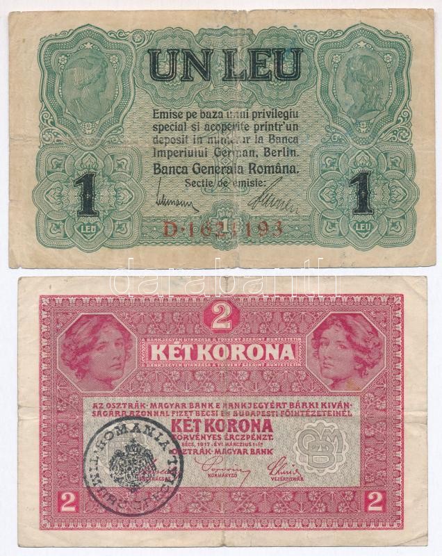 Románia / Német megszállás 1917. 1L román felülbélyegzéssel + Magyaro... https://www.darabanth.com/en/303-Online-auction/303.0/Numismatics/Worldwide-banknotes~300012/Romania-Nemet-megszallas-1917-1L-roman-felulbelyegzessel-plus-Magyarorszag-1917-2K-roman~II1628911