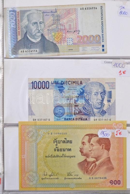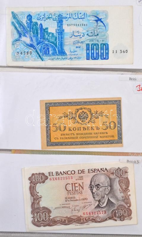 Description: Vegyes: ~121db-os külföldi bankjegy tétel gyűrűs albumban, benne többek között amerikai, görög, izraeli és sok cári orosz bankjegy T:vegyes