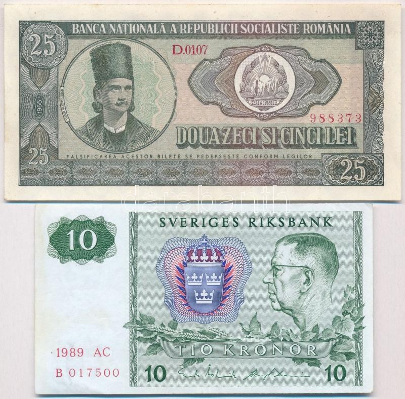 Mixed: Romania 1966. 25 Lei + Sweden 1989. 10 Kronor C:VF,F