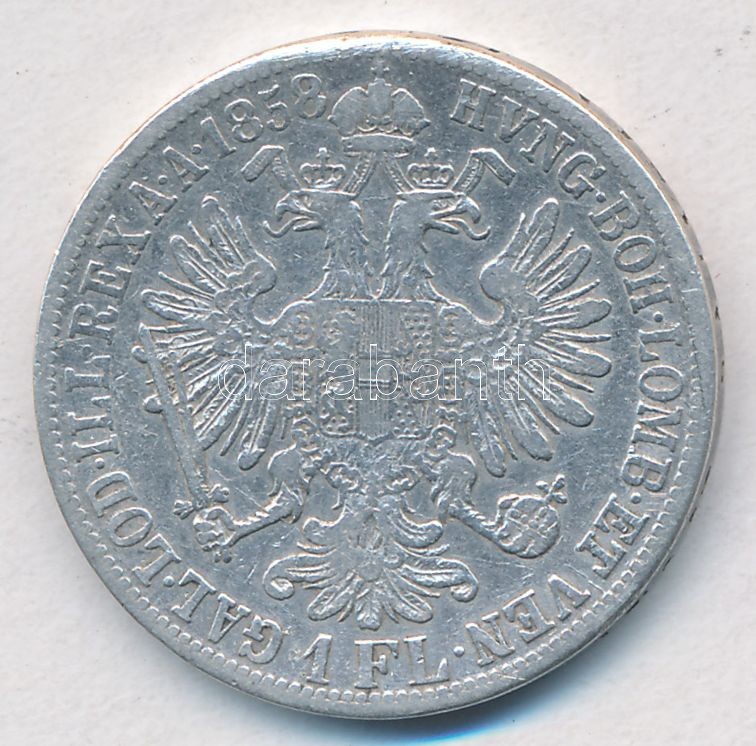 https://www.darabanth.com/en/303-Online-auction/303.0/Numismatics/Worldwide-silver-and-metal-coins~300013/Ausztria-1858V-1Fl-Ag-Ferenc-Jozsef-T3-ph---Austria-1858V-1-Florin-Ag-Franz-Joseph-CF-edge-e~II1628077