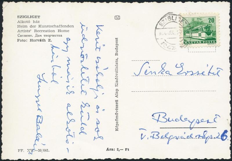 1964 Lengyel Balázs (1918-2007) író, műkritikus üdvözlő sorai egy képeslapon Zelk Zoltánné Sinka Erzsébet irodalomtörténésznek.