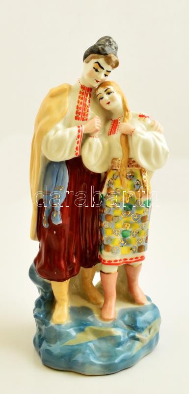 Szerelmespár, jelzett szovjet porcelán, kézzel festett, kis lepattanásokkal, m: 28 cm