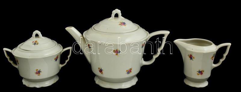 ZSolnay virág mintás teás készlet, matricás, jelzett, egyiken lepattan...