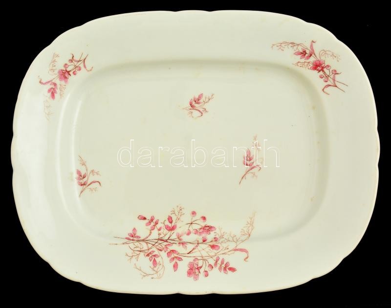 cca 1900 Galagonya mintás tál, részben kézzel festett, kopott, 29×37,5...