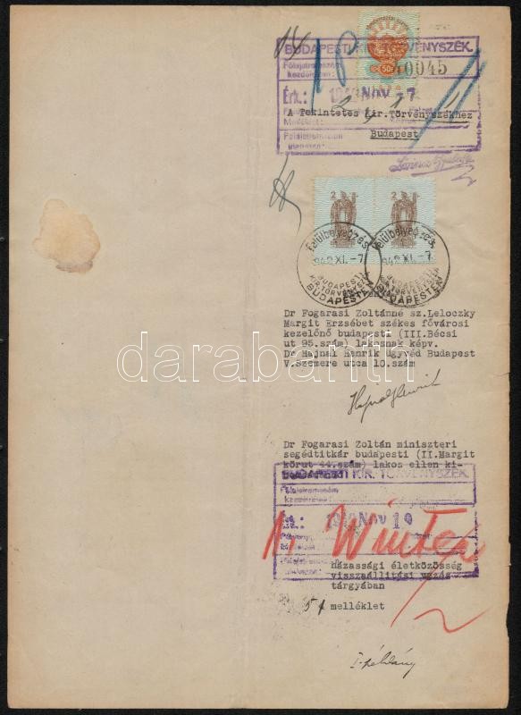 cca 1940 10 db okmány okmánybélyegekkel és törvénykezési illetékbélyegekkel