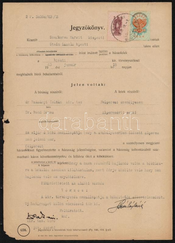 cca 1940 10 db okmány okmánybélyegekkel és törvénykezési illetékbélyeg...