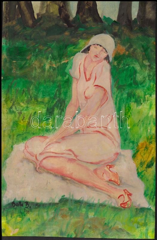 Balla jelzéssel: Ülő nő, akvarell, papír, 32×21 cm