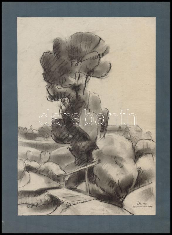 Ducsay Béla (1893-1967): Pálosvörösmart. Szén, papír, jelzett, kartonr...