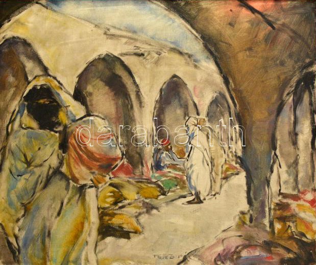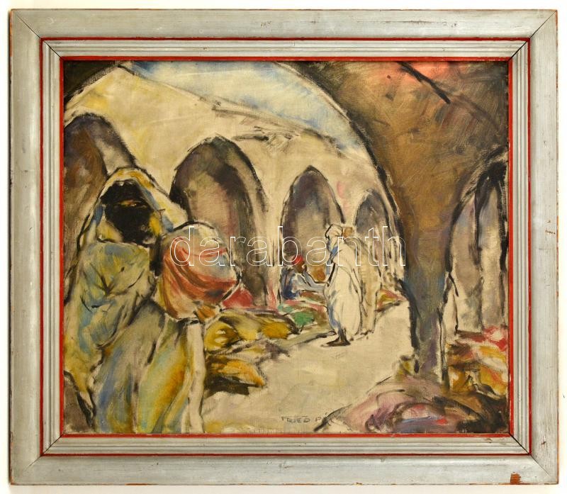 Fried Pál (1893-1974): Arab utca részlet. Olaj, vászon, jelzett, sérült, keretben, 55×65 cm