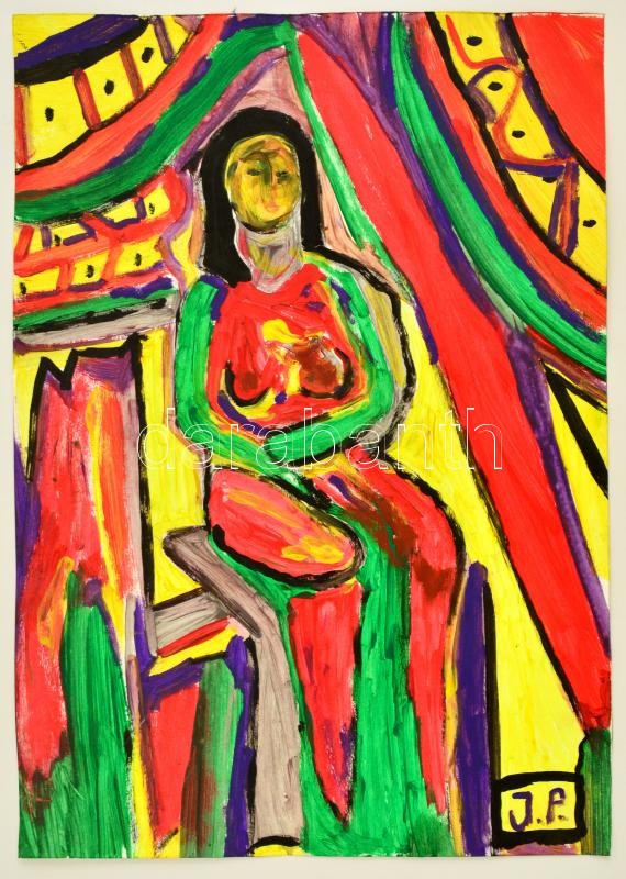 J.P. jelzéssel: Ülő női akt. Vegyes technika, papír, 50×35 cm