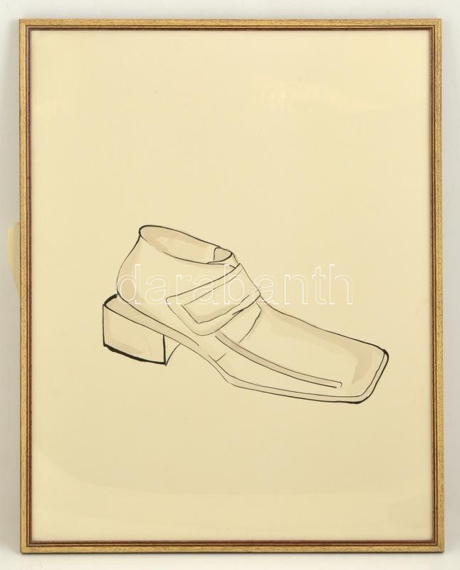 Jelzés nélkül: Cipő. Tus-akvarell, papír, üvegezett keretben, 60×48 cm