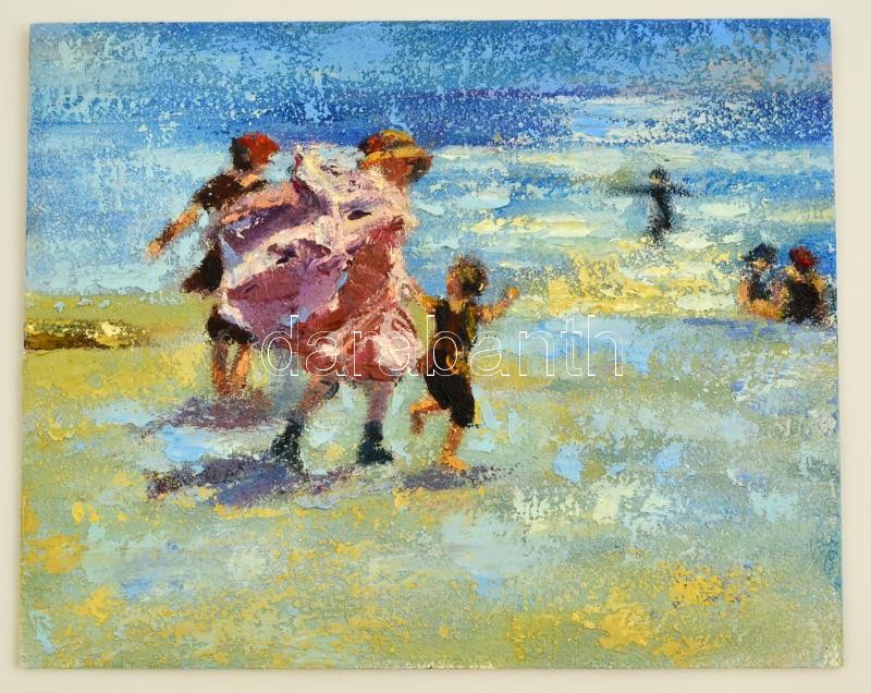 Jelzés nélkül: Parton, olaj, farost, 25×20 cm