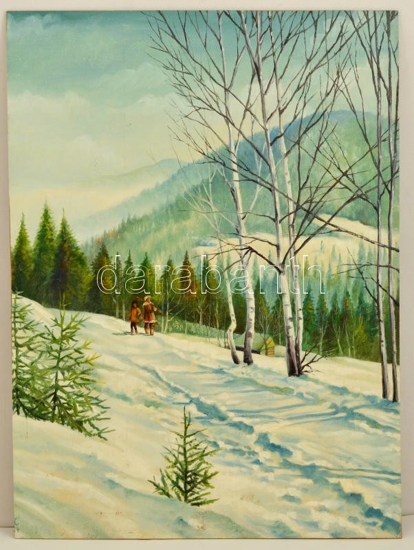 Jelzés nélkül: Téli vadászat, olaj, farost, 76×57 cm