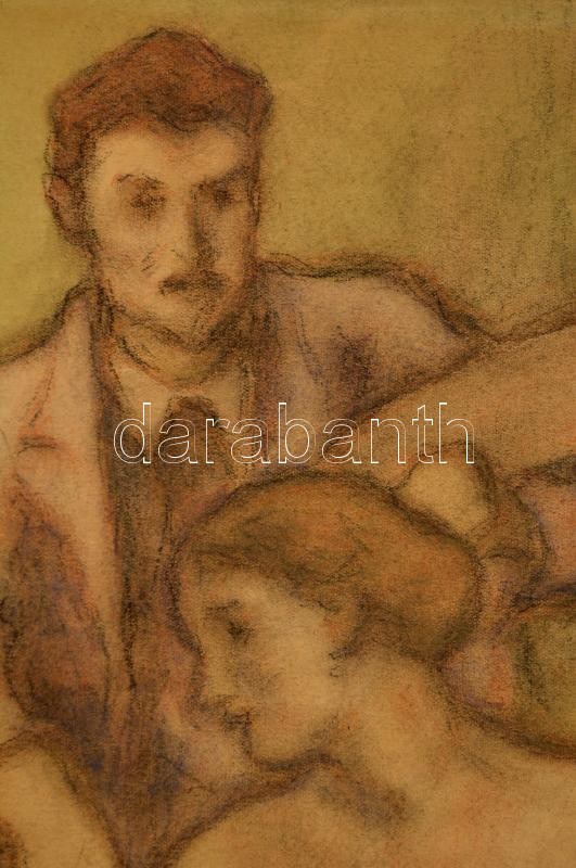 Márkus Imre (1872-?): Önarckép ülő akttal 1941. Vegyes technika, papír...