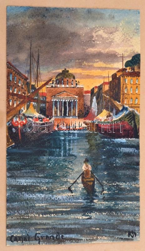 RN jelzéssel: Canal Grande, Trieszt, akvarell, papír, üvegezett fa ker...