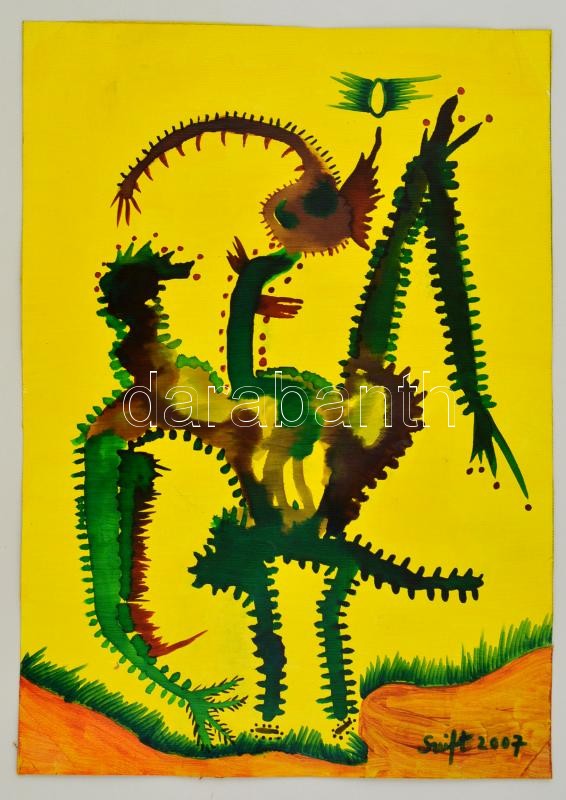 Szeift Béla (1944-2012): A fűre ülni szabad, olaj, vászon, jelzett, 45...