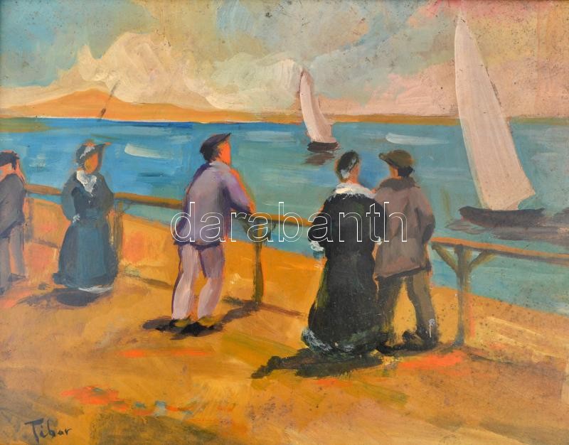 Tibor jelzéssel: Kikötő, olaj, fa, keretben, 29,5×38 cm
