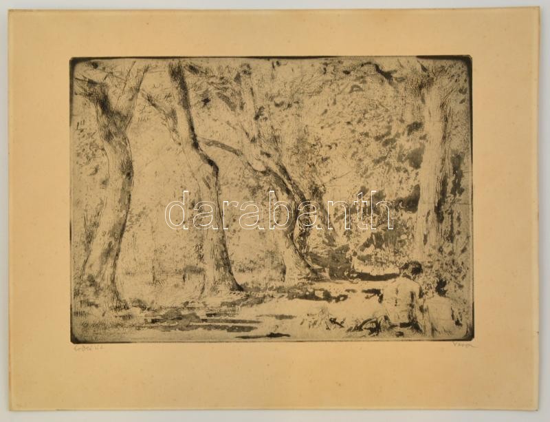 Varga Nándor Lajos (1895-1978): Erdei út. Rézkarc, karton, jelzett, 29...