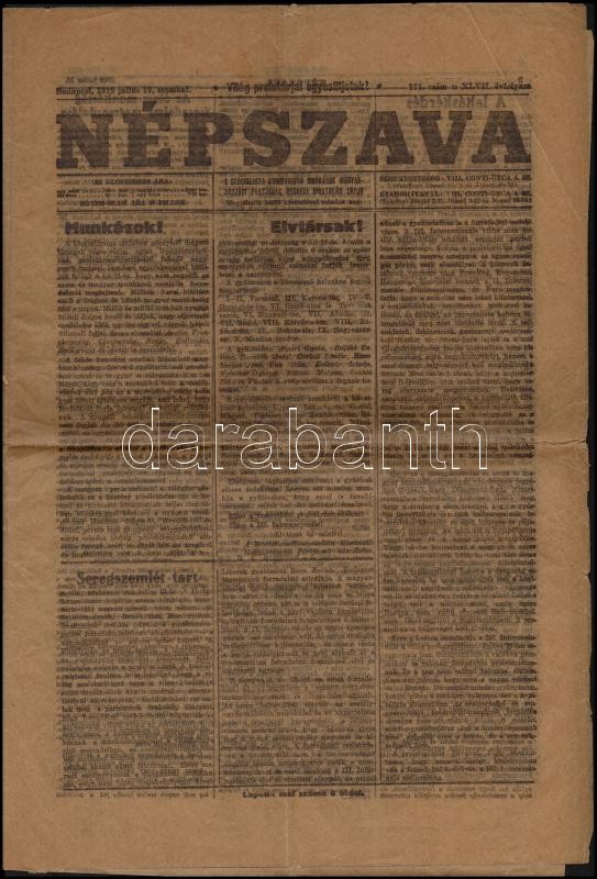 https://www.darabanth.com/en/303-Online-auction/303.0/Other-collectibles/Printed-Materials~29/1919-Nepszava-1919-julius-19-XLVIII-evf-171-szam--Benne-a-kor-hireivel-8-p~II1628308