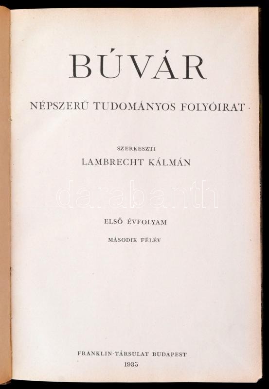 1935 a Búvár folyóirat 1. évf. 2. félévének lapszámai, számos érdekes írással, egybekötve, félvászon kötésben