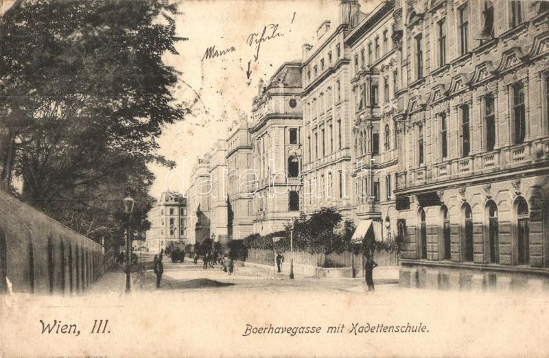 Vienna, Wien; III. Boerhavegasse mit Kadettenschule / street view with military school